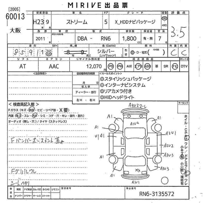 Honda Stream, 2011 года - Лот№60013 ★3.5