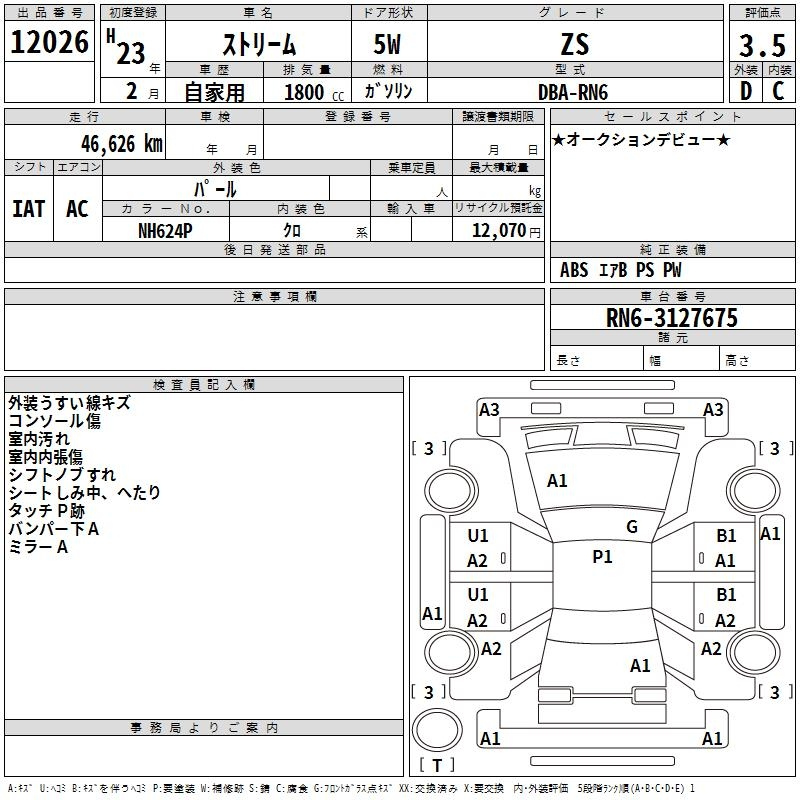 Honda Stream, 2011 года - Лот№12026 ★3.5
