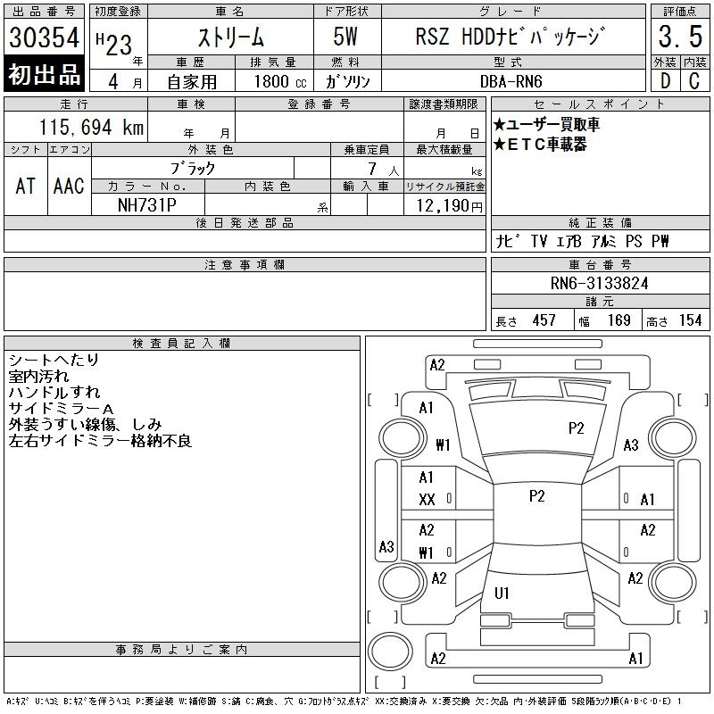Honda Stream, 2011 года - Лот№30354 ★3.5