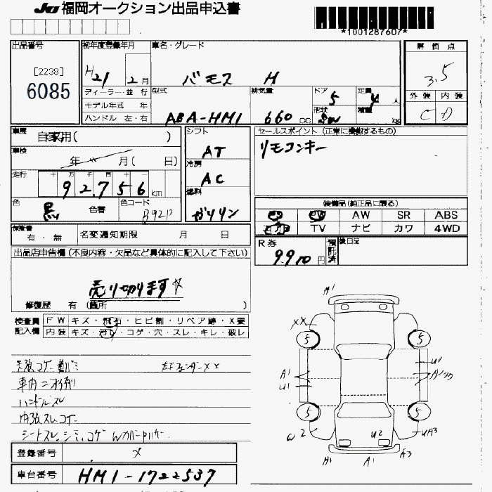 Honda Vamos, 2009 года - Лот№6085 ★3.5