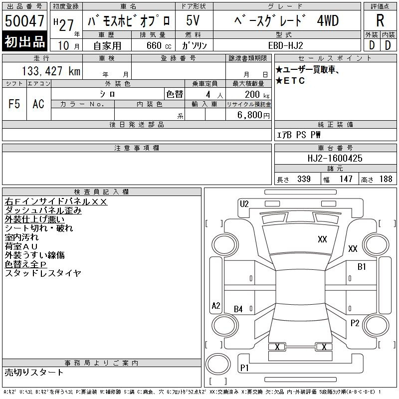 Honda Vamos, 2015 года - Лот№50047 ★R