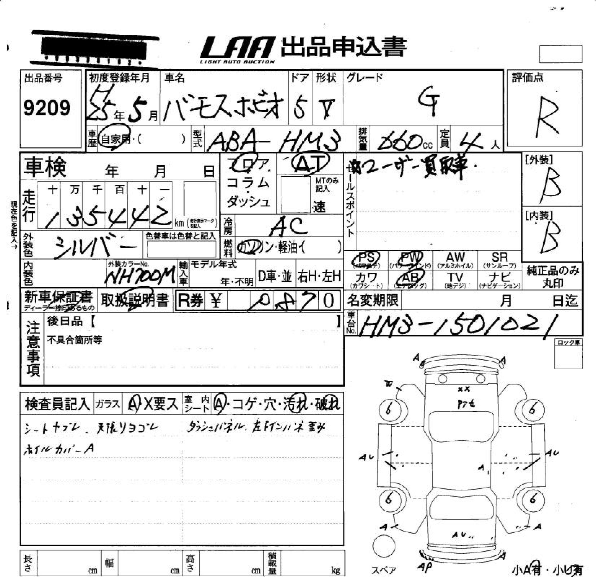 Honda Vamos, 2013 года - Лот№9209 ★R