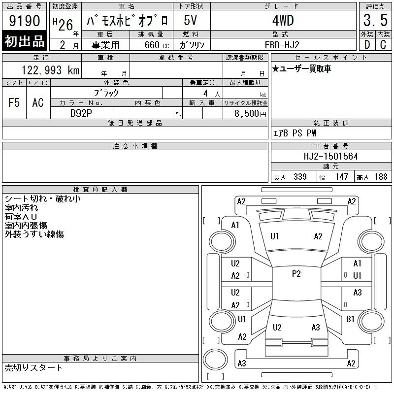 Honda Vamos, 2014 года - Лот№9190 ★3.5
