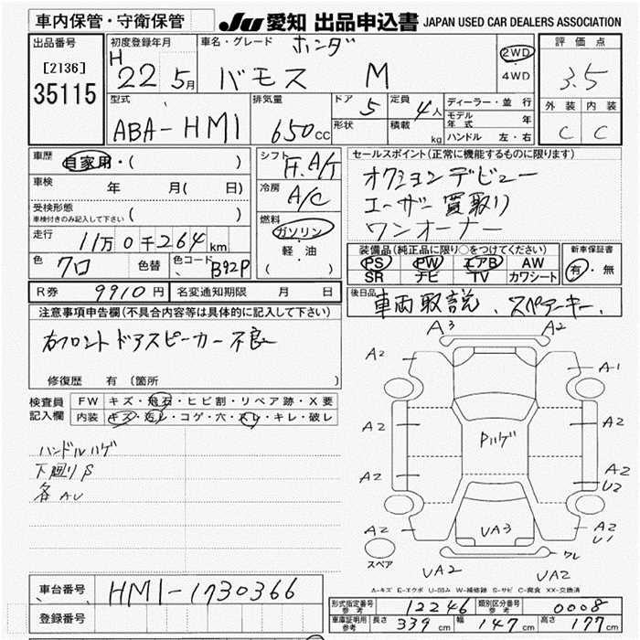Honda Vamos, 2010 года - Лот№35115 ★3.5
