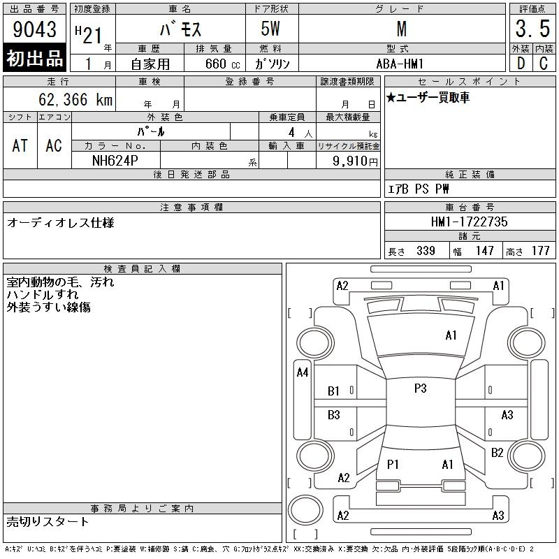 Honda Vamos, 2009 года - Лот№9043 ★3.5