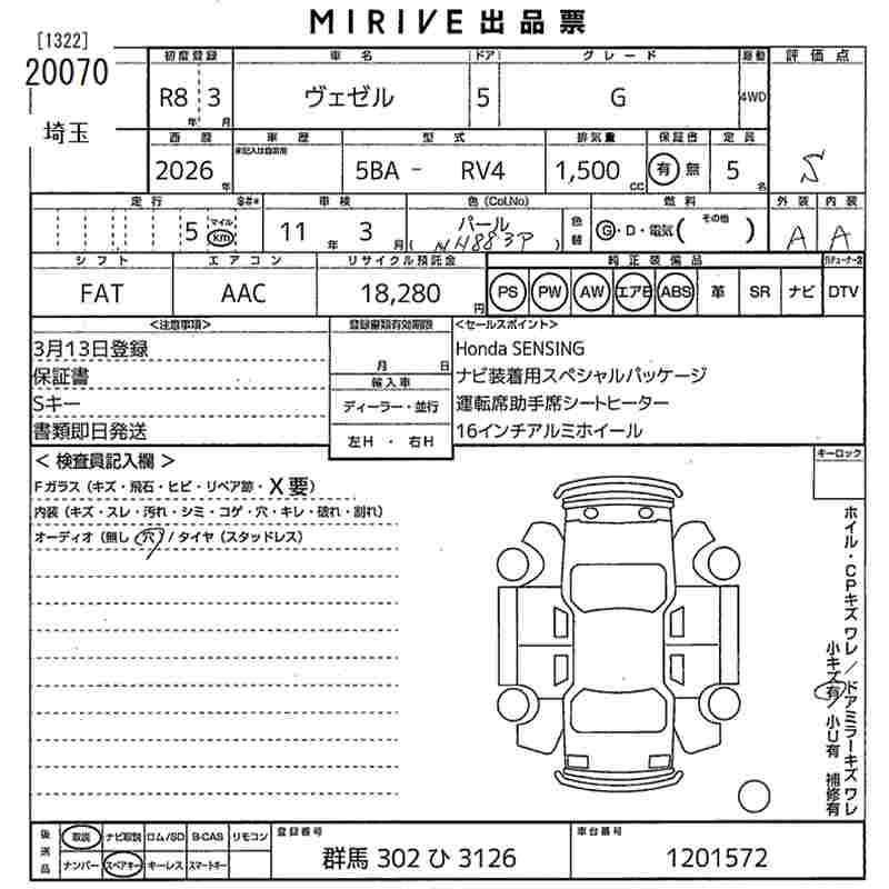 Honda Vezel, 2026 года - Лот№20070 ★S