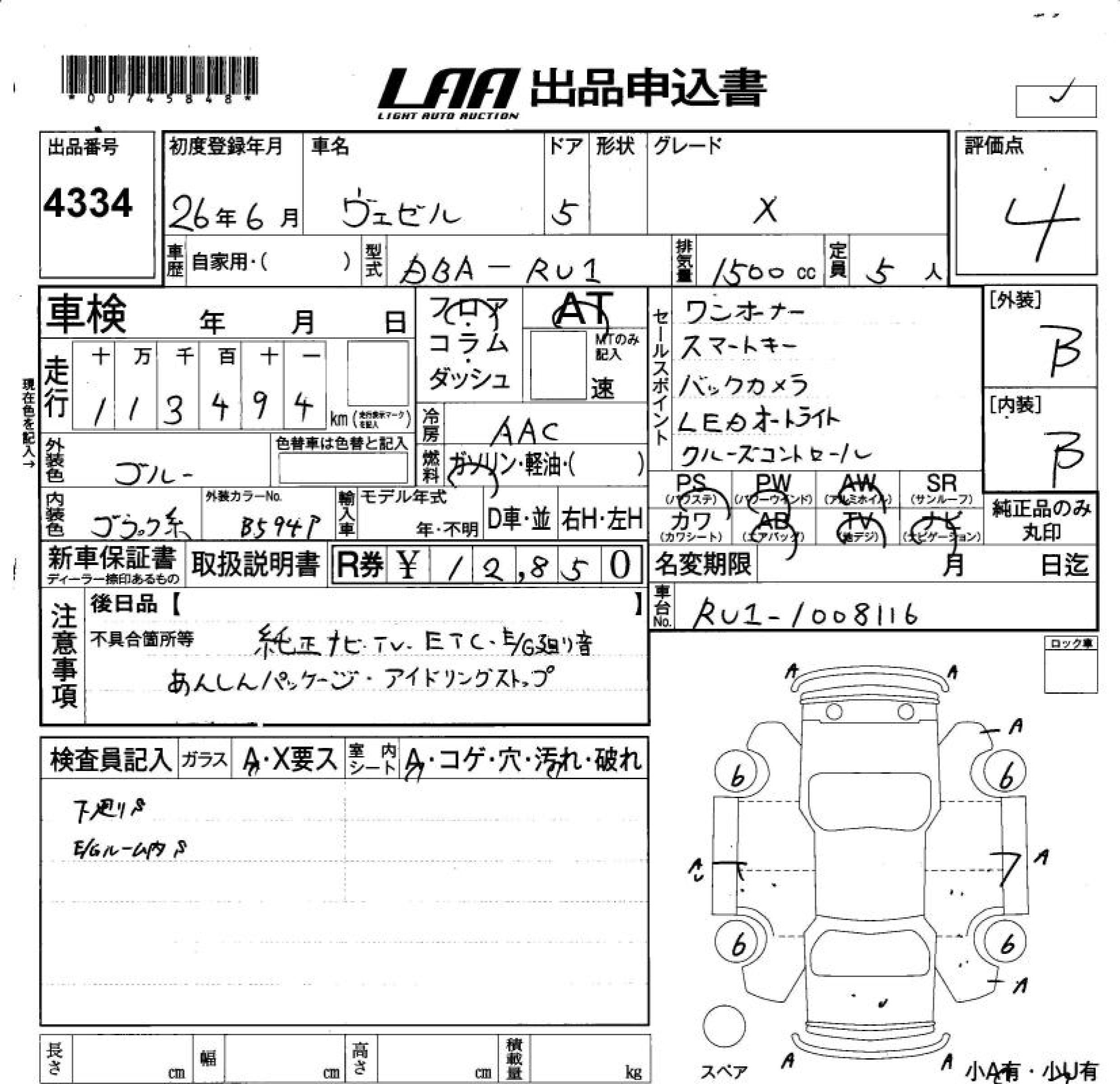 Honda Vezel, 2014 года - Лот№4334 ★4