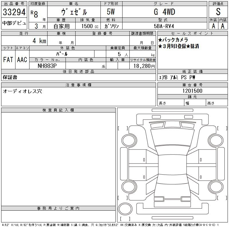 Honda Vezel, 2026 года - Лот№33294 ★S
