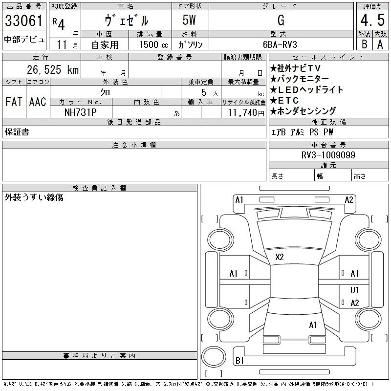 Honda Vezel, 2022 года - Лот№33061 ★4.5