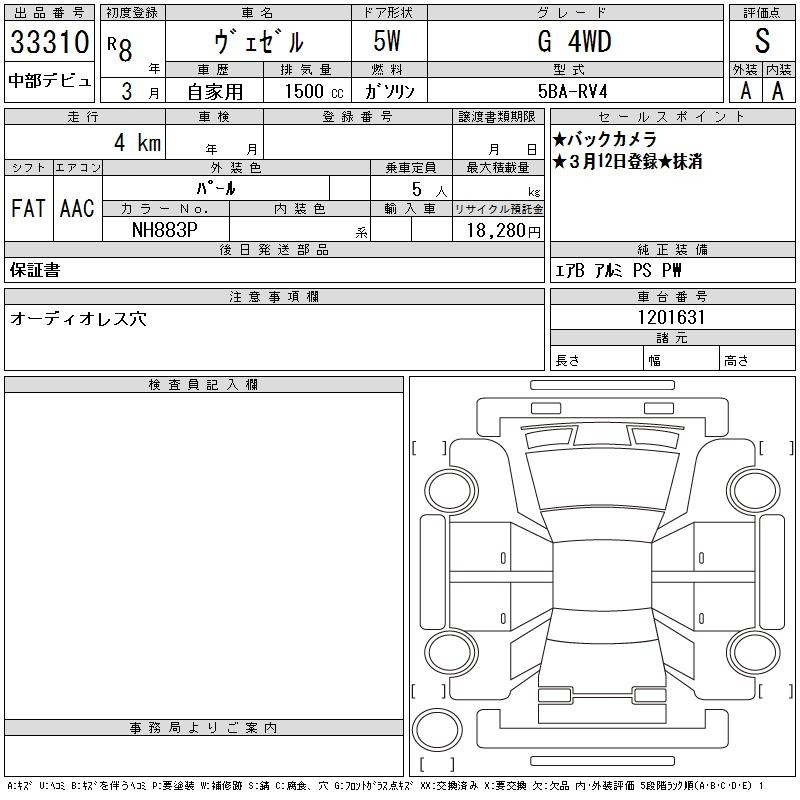 Honda Vezel, 2026 года - Лот№33310 ★S