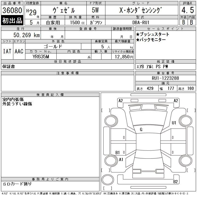 Honda Vezel, 2017 года - Лот№36080 ★4.5