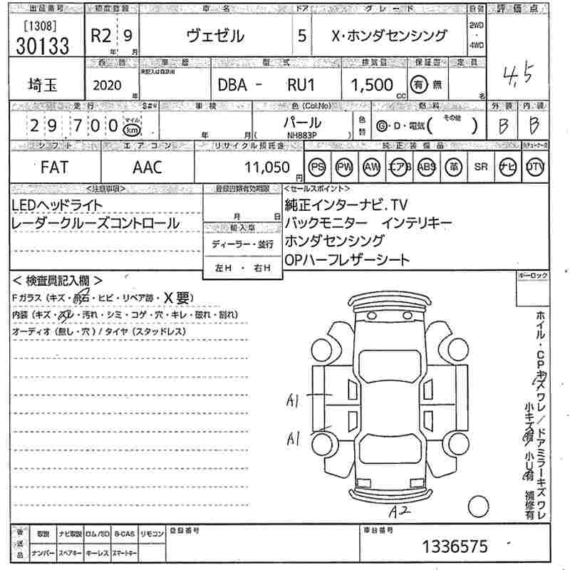 Honda Vezel, 2020 года - Лот№30133 ★4.5