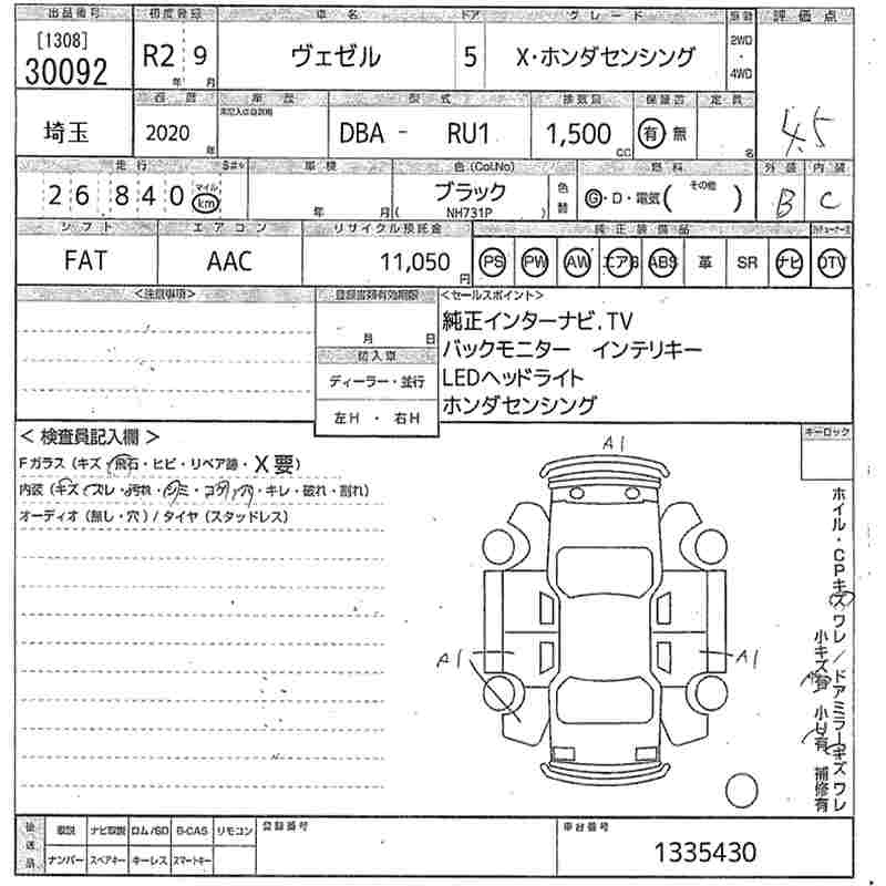 Honda Vezel, 2020 года - Лот№30092 ★4.5