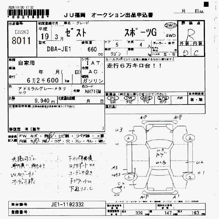 Лот№8011 07 Декабря 2025 года JU Fukuoka