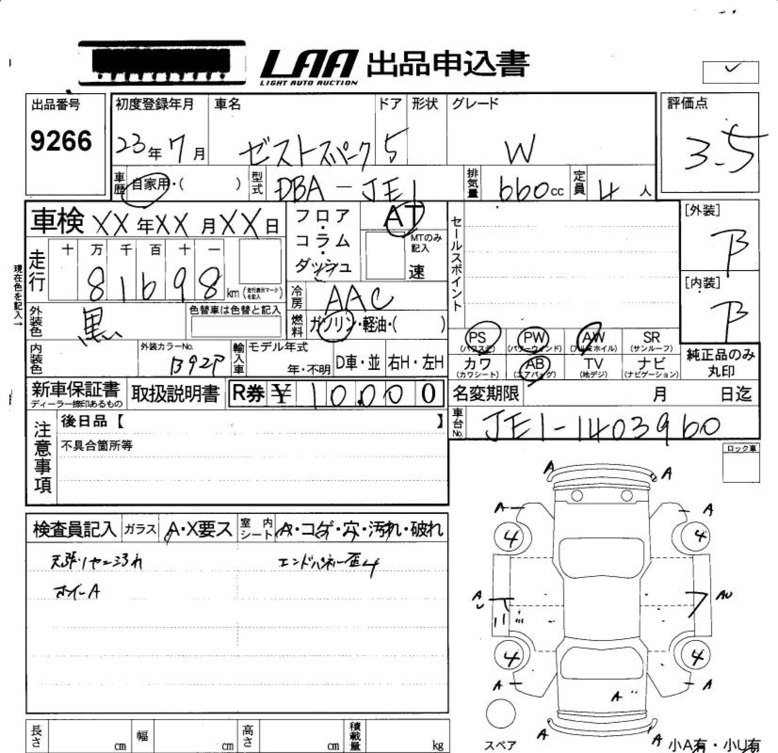 Honda Zest, 2011 года - Лот№9266 ★3.5