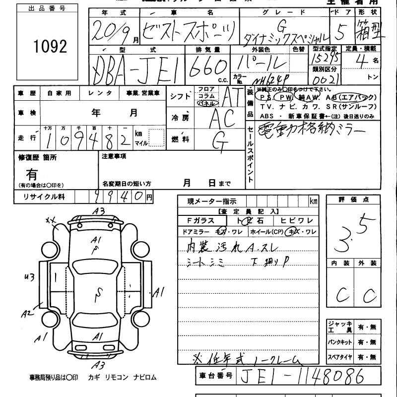 Honda Zest, 2008 года - Лот№1092 ★3.5