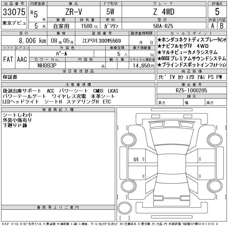 Honda Zr-v, 2023 года - Лот№33075 ★5