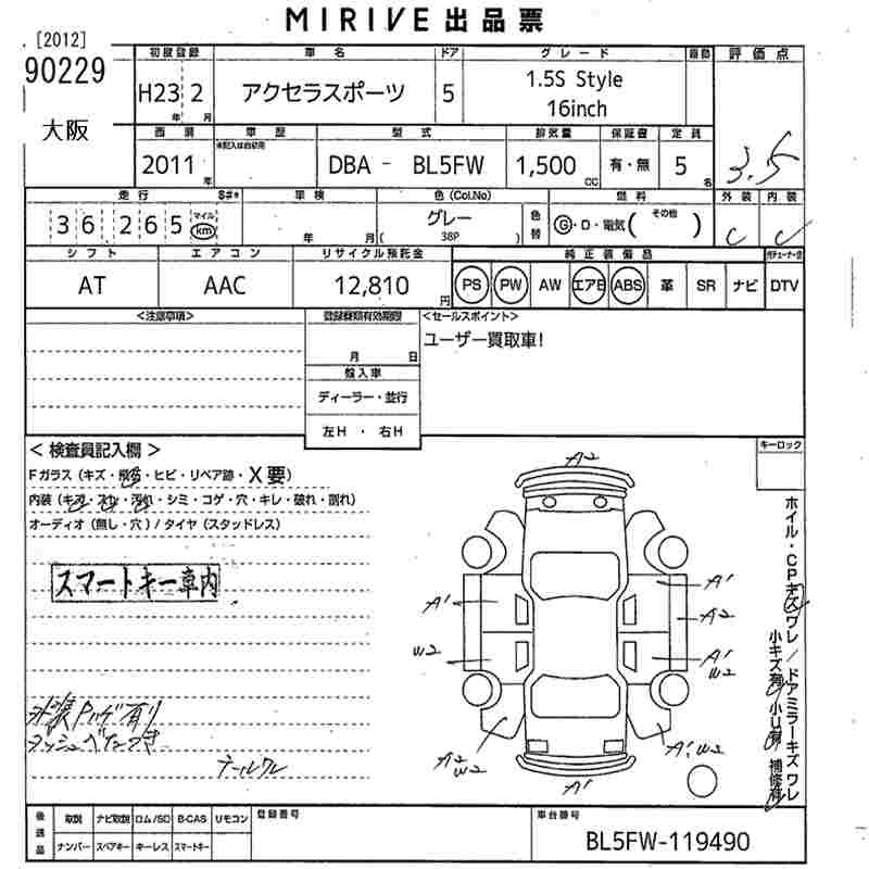 Mazda Axela, 2011 года - Лот№90229 ★3.5