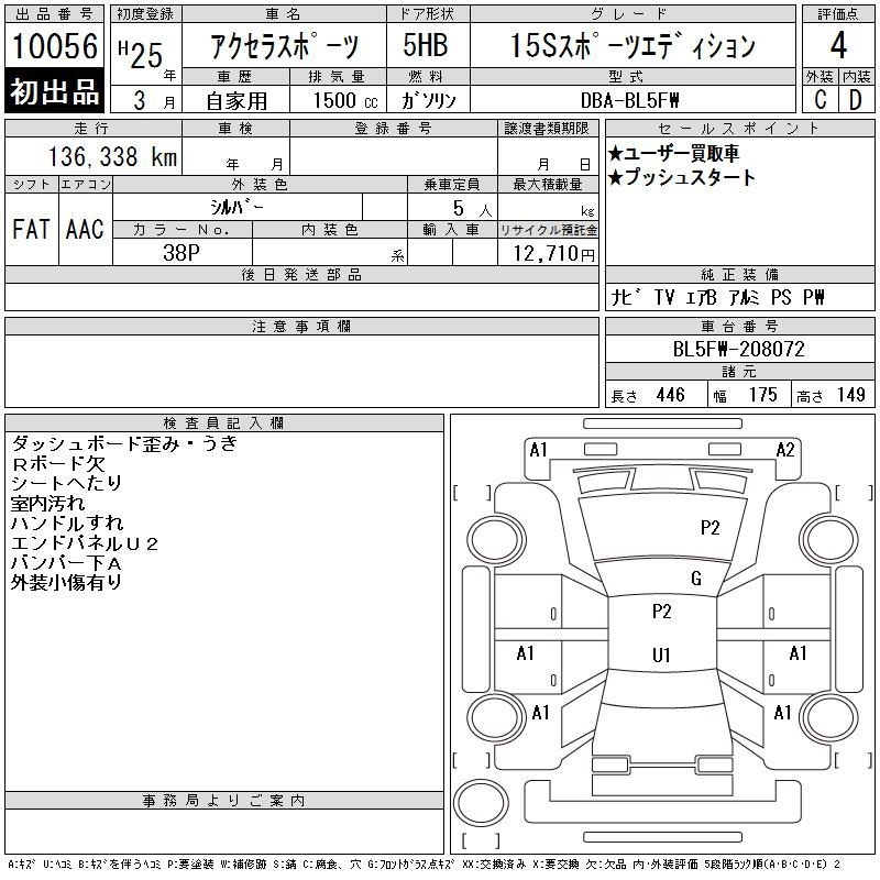 Mazda Axela, 2013 года - Лот№10056 ★4