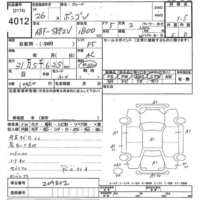 Mazda Bongo van, 2014 года - Лот№4012 ★3.5
