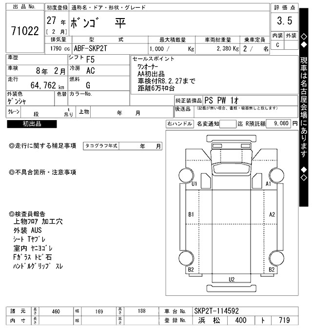 Mazda Bongo, 2015 года - Лот№71022 ★3.5