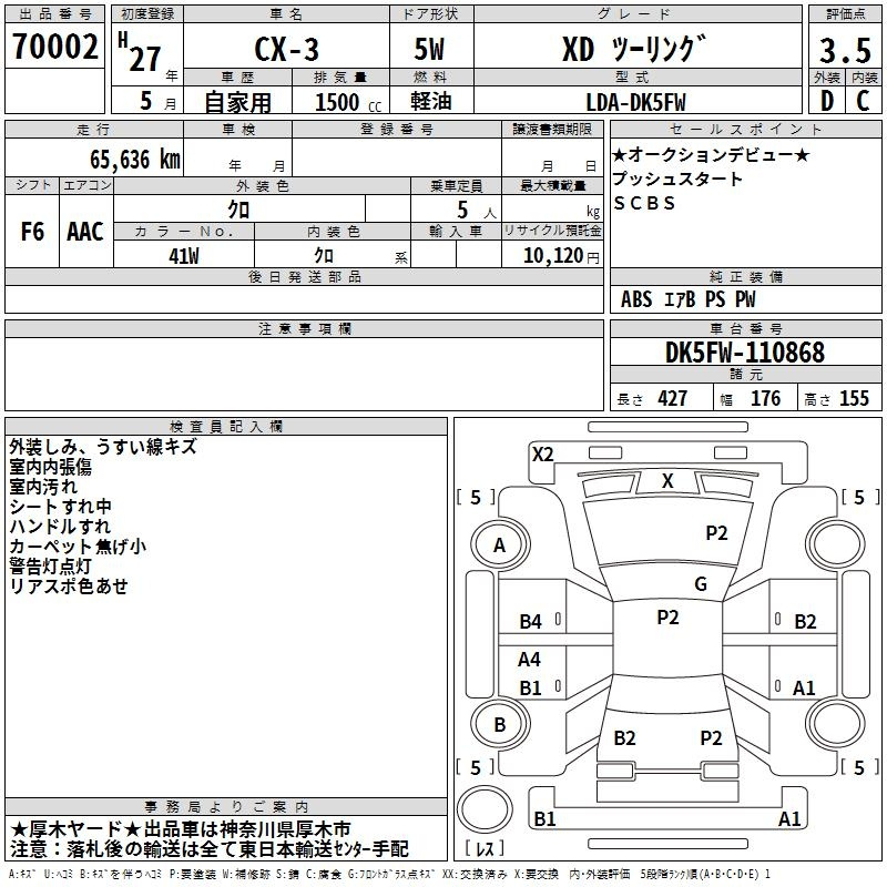 Mazda Cx-3, 2015 года - Лот№70002 ★3.5
