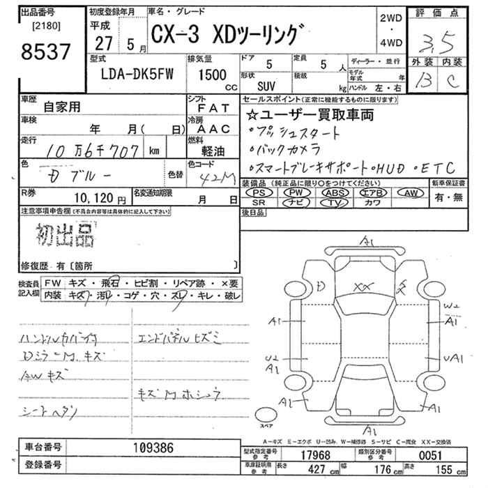 Mazda Cx-3, 2015 года - Лот№8537 ★3.5
