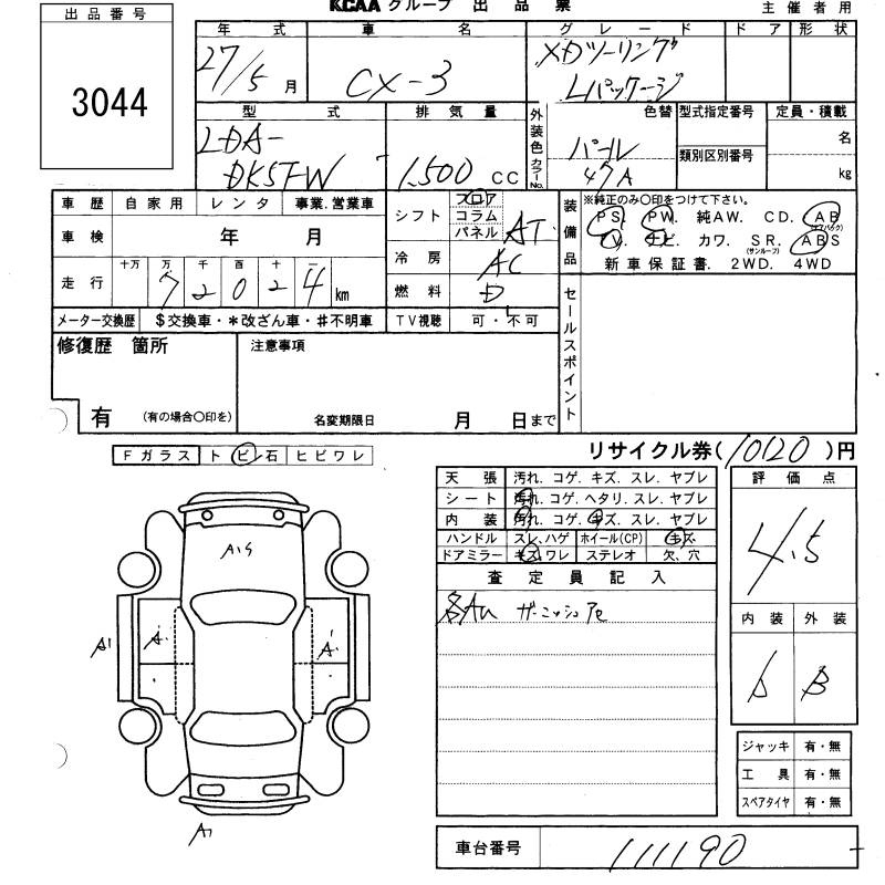Mazda Cx-3, 2015 года - Лот№3044 ★4.5
