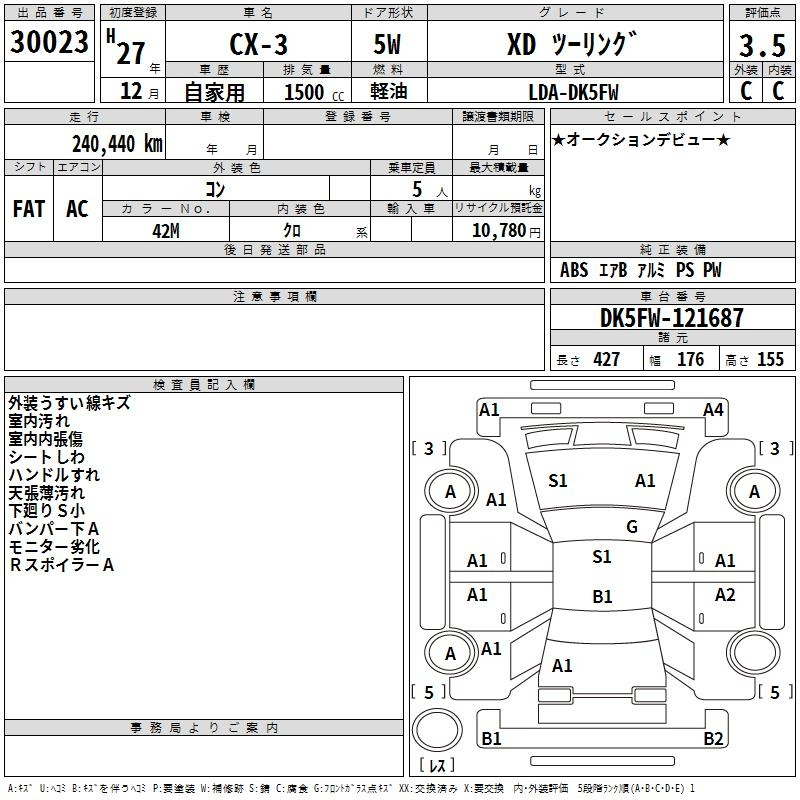 Mazda Cx-3, 2015 года - Лот№30023 ★3.5