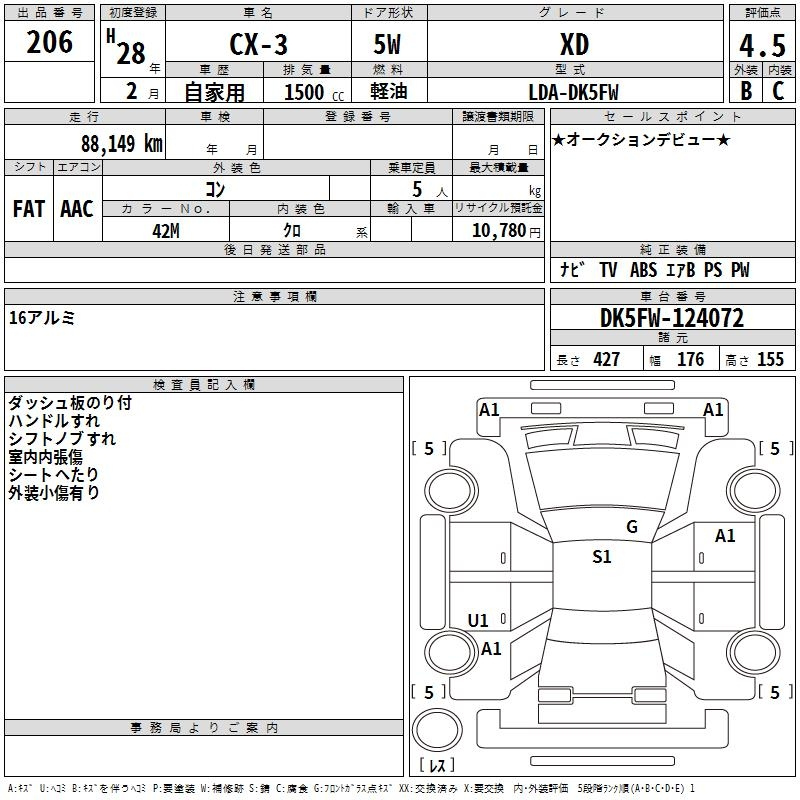 Mazda Cx-3, 2016 года - Лот№206 ★4.5