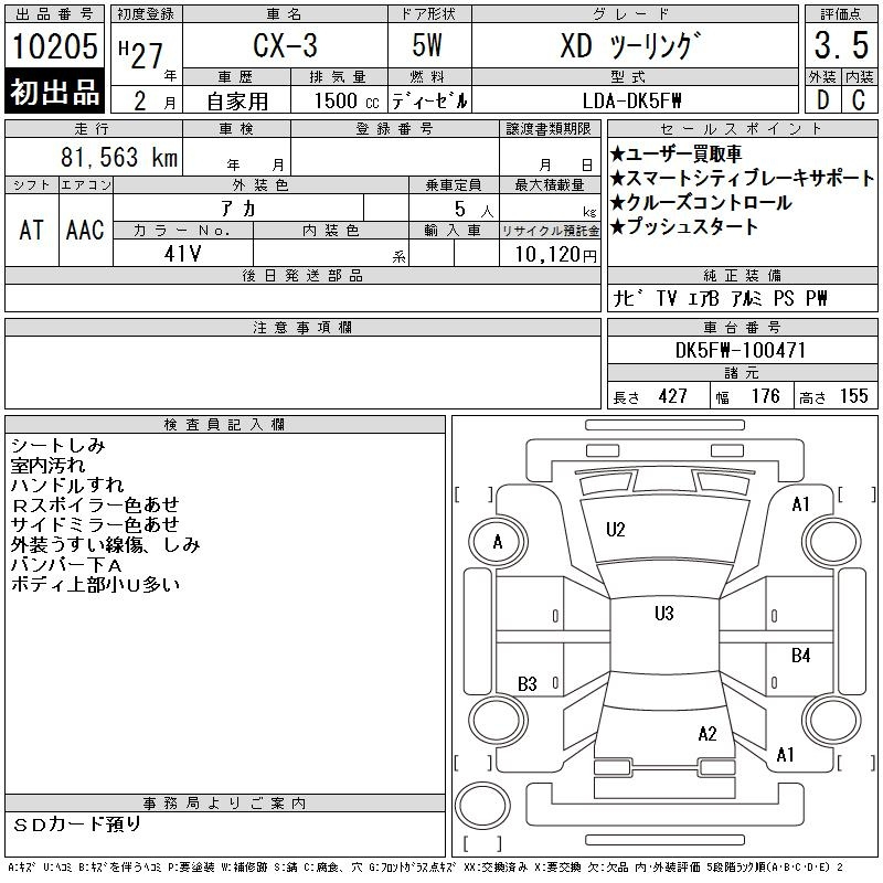 Mazda Cx-3, 2015 года - Лот№10205 ★3.5