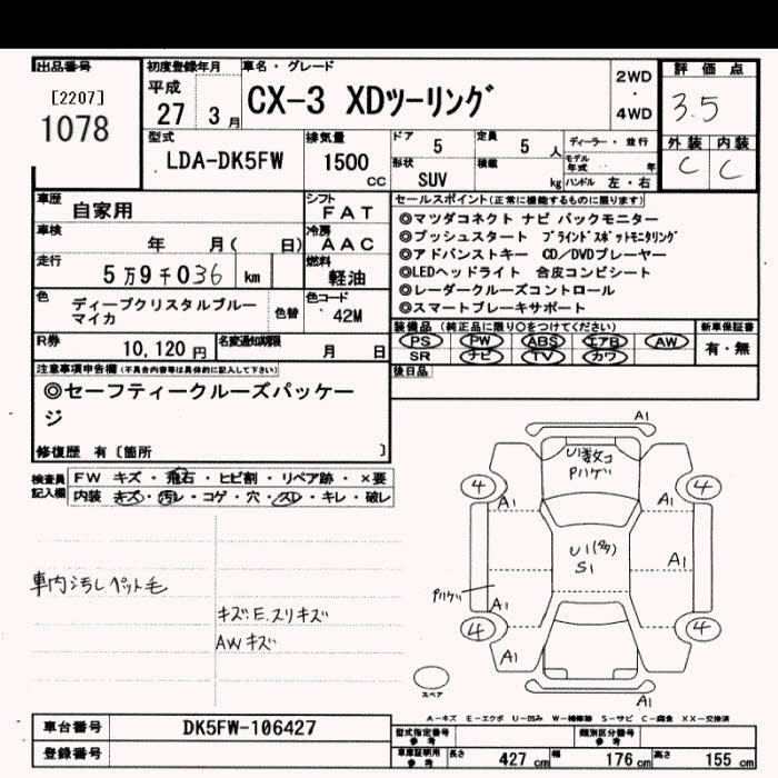 Mazda Cx-3, 2015 года - Лот№1078 ★3.5