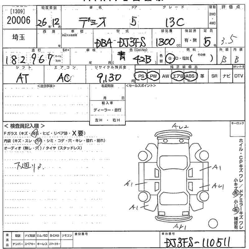 Mazda Demio, 2014 года - Лот№20006 ★3.5