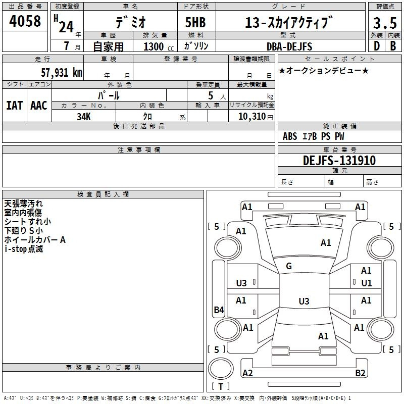 Mazda Demio, 2012 года - Лот№4058 ★3.5