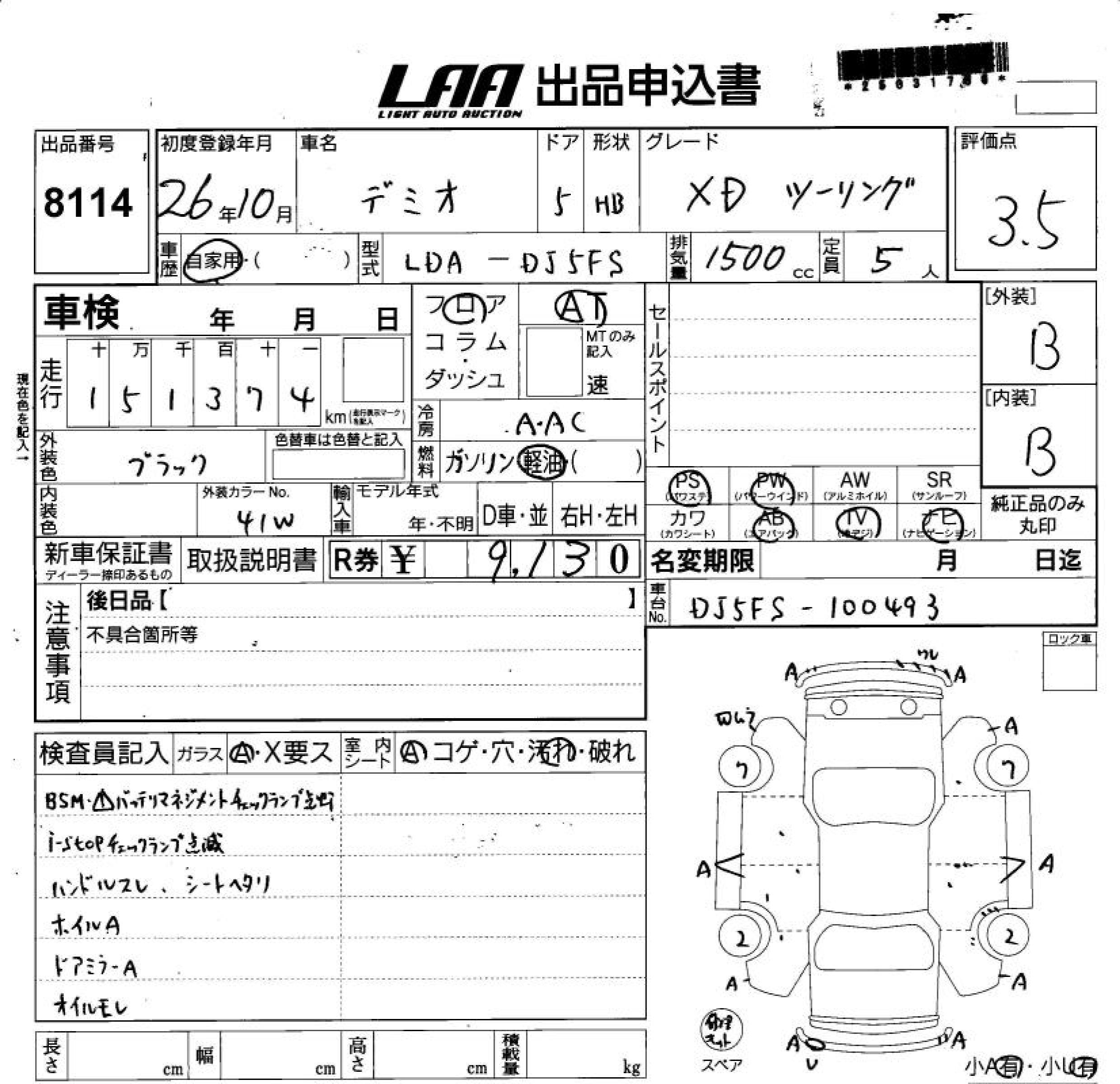 Mazda Demio, 2014 года - Лот№8114 ★3.5