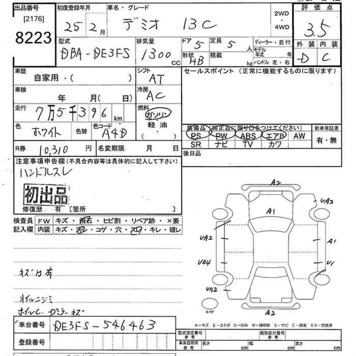 Mazda Demio, 2013 года - Лот№8223 ★3.5