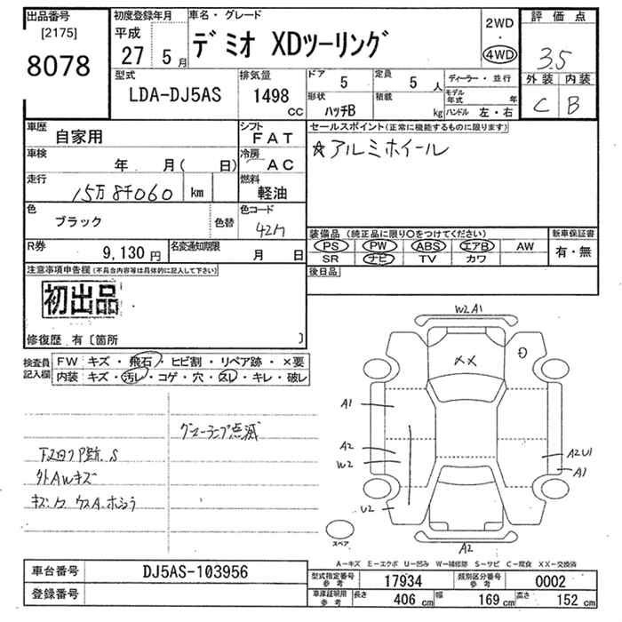 Mazda Demio, 2015 года - Лот№8078 ★3.5