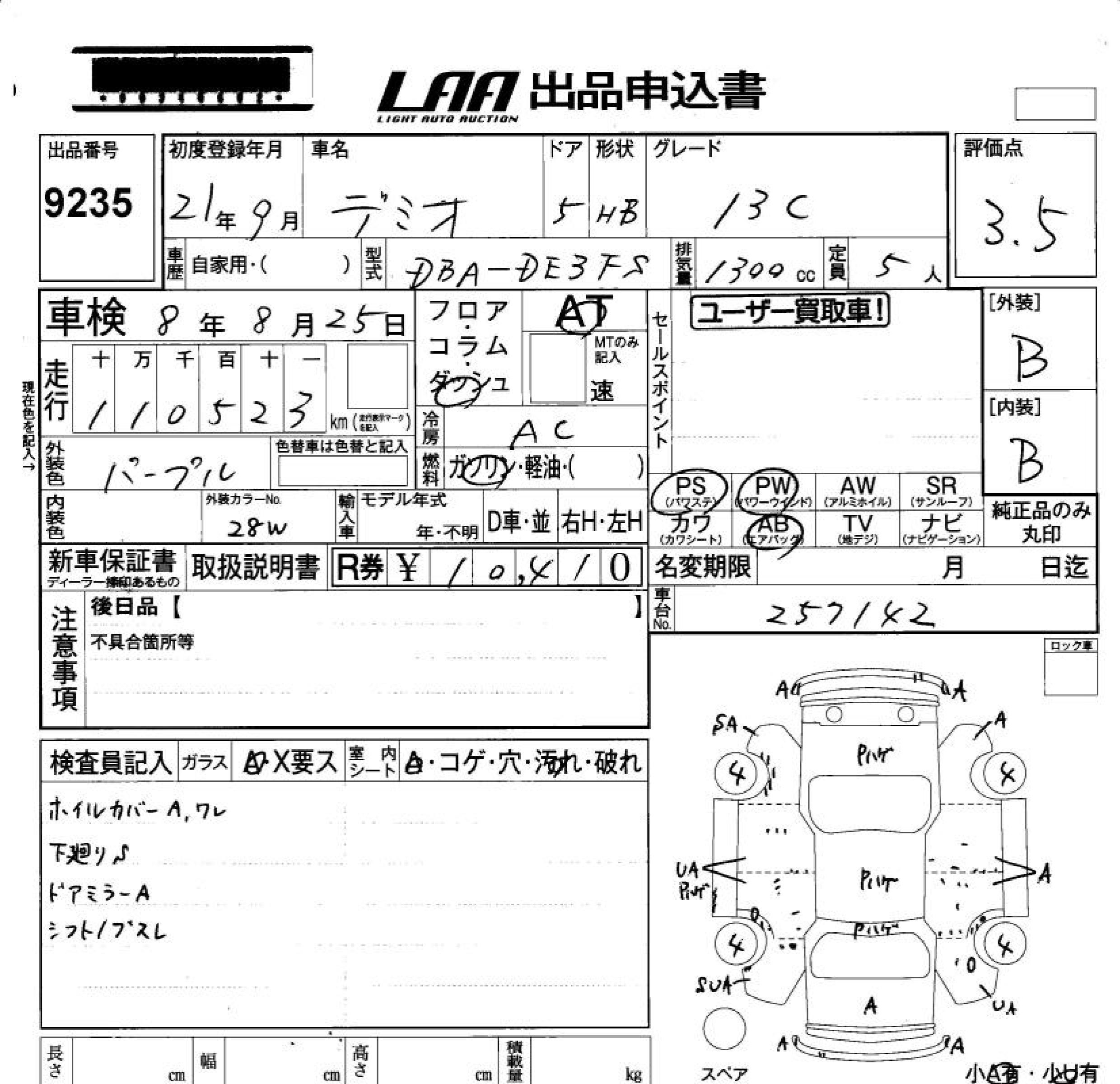 Mazda Demio, 2009 года - Лот№9235 ★3.5