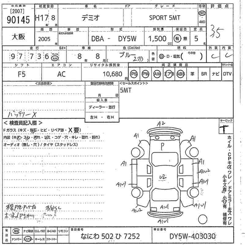Mazda Demio, 2005 года - Лот№90145 ★3.5