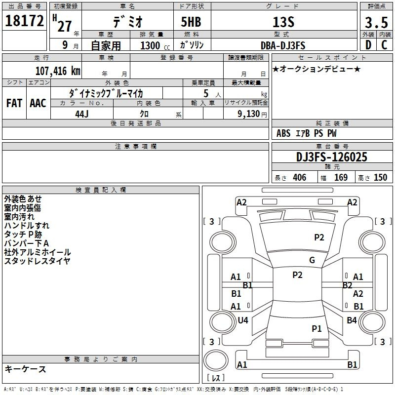 Mazda Demio, 2015 года - Лот№18172 ★3.5