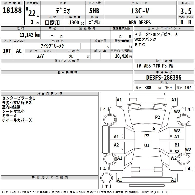 Mazda Demio, 2010 года - Лот№18188 ★3.5