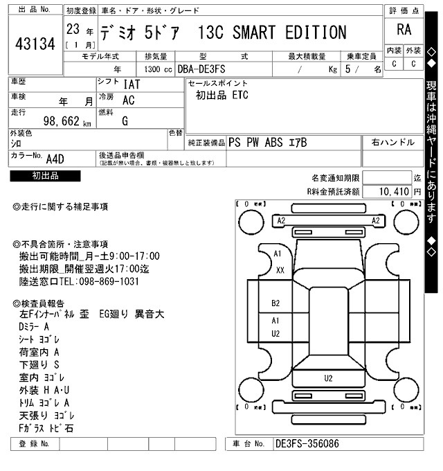 Mazda Demio, 2011 года - Лот№43134 ★RA