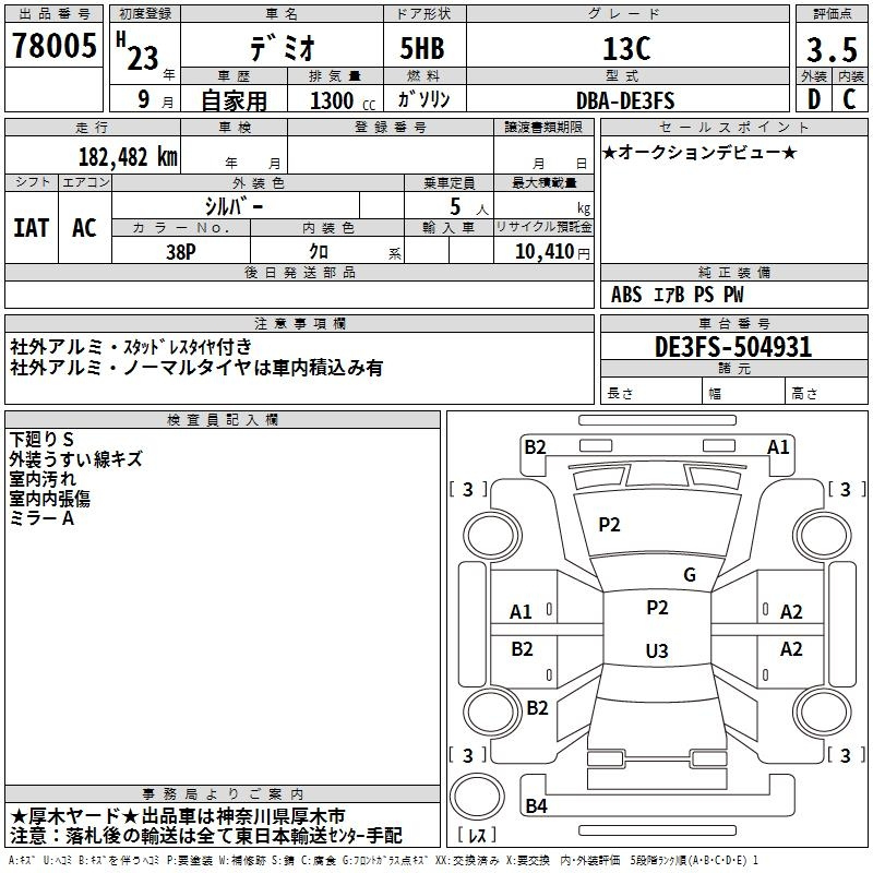 Mazda Demio, 2011 года - Лот№78005 ★3.5