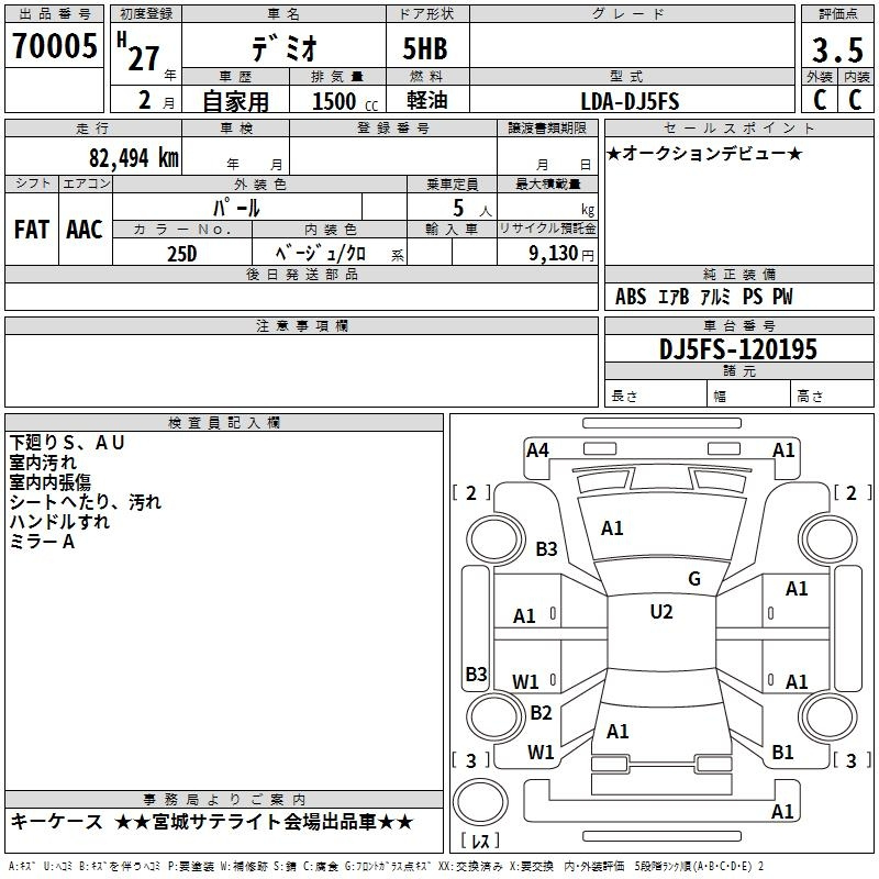 Mazda Demio, 2015 года - Лот№70005 ★3.5