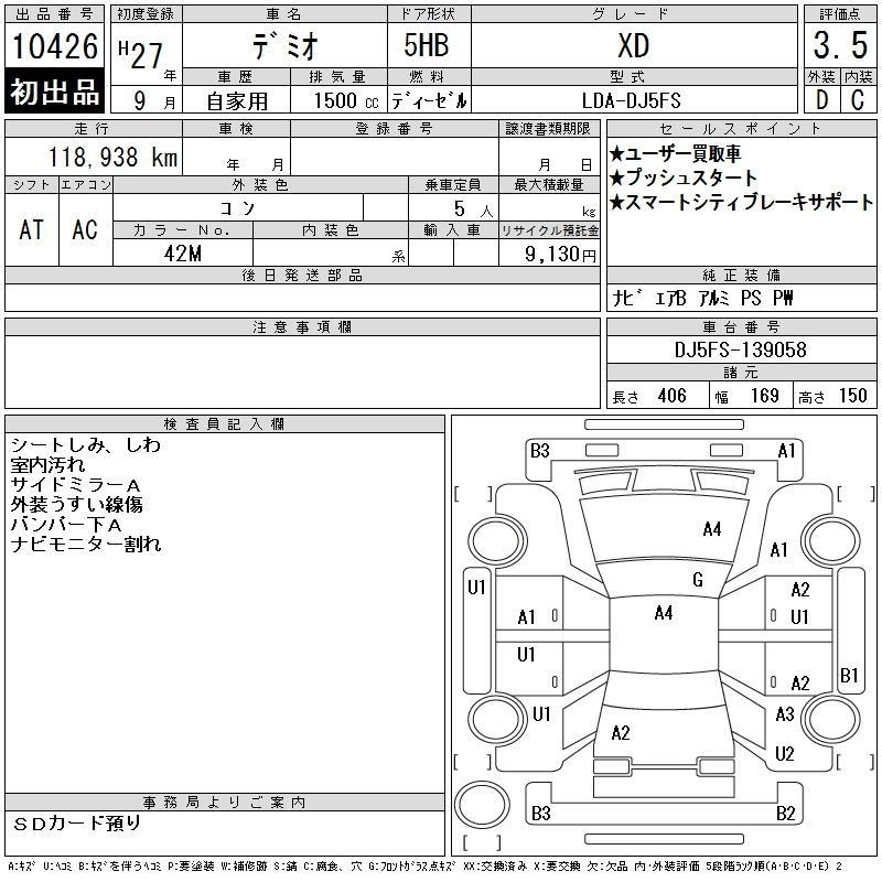 Mazda Demio, 2015 года - Лот№10426 ★3.5