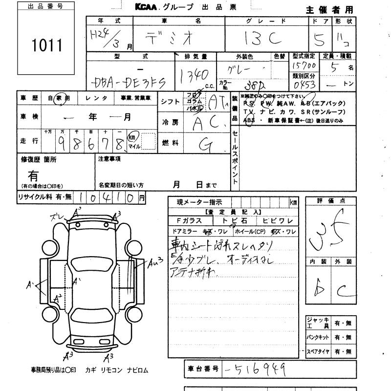 Mazda Demio, 2012 года - Лот№1011 ★3.5