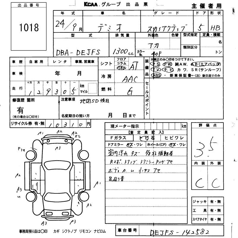 Mazda Demio, 2012 года - Лот№1018 ★3.5