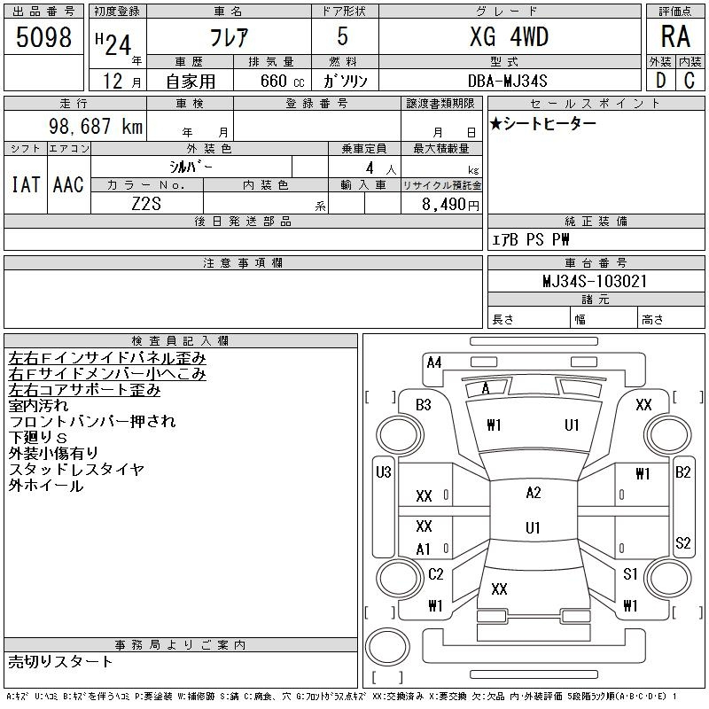 Mazda Flair, 2012 года - Лот№5098 ★RA