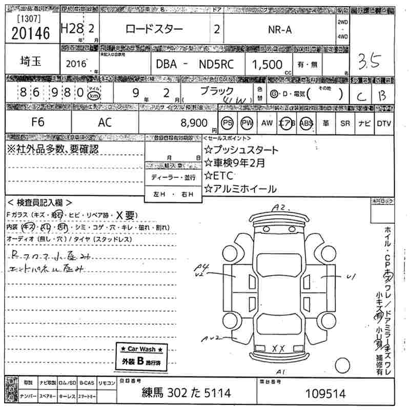 Mazda Roadster, 2016 года - Лот№20146 ★3.5