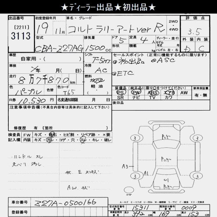 Mitsubishi Colt, 2007 года - Лот№3113 ★3.5